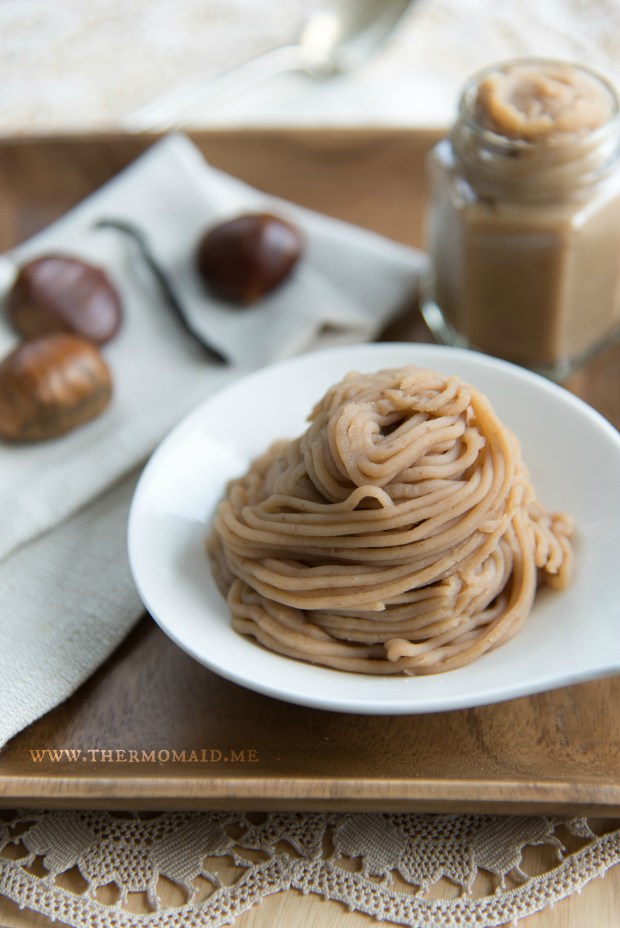 Da ist nun das versprochene Rezept für das hausgemachte Maroni-Püree! Dafür brauchst Du geschälte Maroni und die Thermomix-Methode findest Du hier.